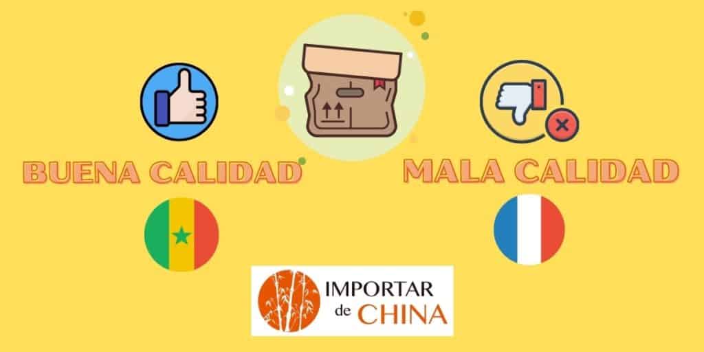 Muchas veces el resultado de la calidad viene directamente relacionado por el precio de la unidad y por las materias primas con las que está fabricado el producto. En la misma fábrica de China se pueden estar manufacturando el mismo tipo de producto para diferentes mercados. El que quiere vender Senegal desea abaratar costes y utilizará materias primas más baratas. Por otra parte, el que quiere vender en Francia pedirá que se fabriquen sus productos con los componentes y materiales que satisfagan las expectativas de sus consumidores en Europa. Lo que resulta que en la misma fábrica china se elaboren productos de diferentes calidades.