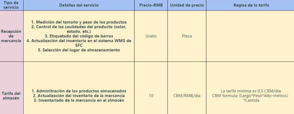 En la teoría, el servicio que nos ofrece Send From China es perfecto e innovador. Y es que tener un almacén de distribución en China puede darle muchas ventajas a nuestro negocio de importación y agilizar la cadena de distribución y el envío de nuestros productos hasta el cliente final. No obstante, como todo en esta vida, tiene un precio. ¿Cuanto nos costará tener un almacén en China? A continuación os damos una tabla que desglosa algunos de las tarifas de SFC.